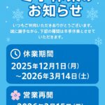 今年もたくさんのご来場、ありがとうございました。 12月1日(月)から冬季休業となります。 2026年3月15日(日)から営業開始となります。 また来年にお会いしましょう!
